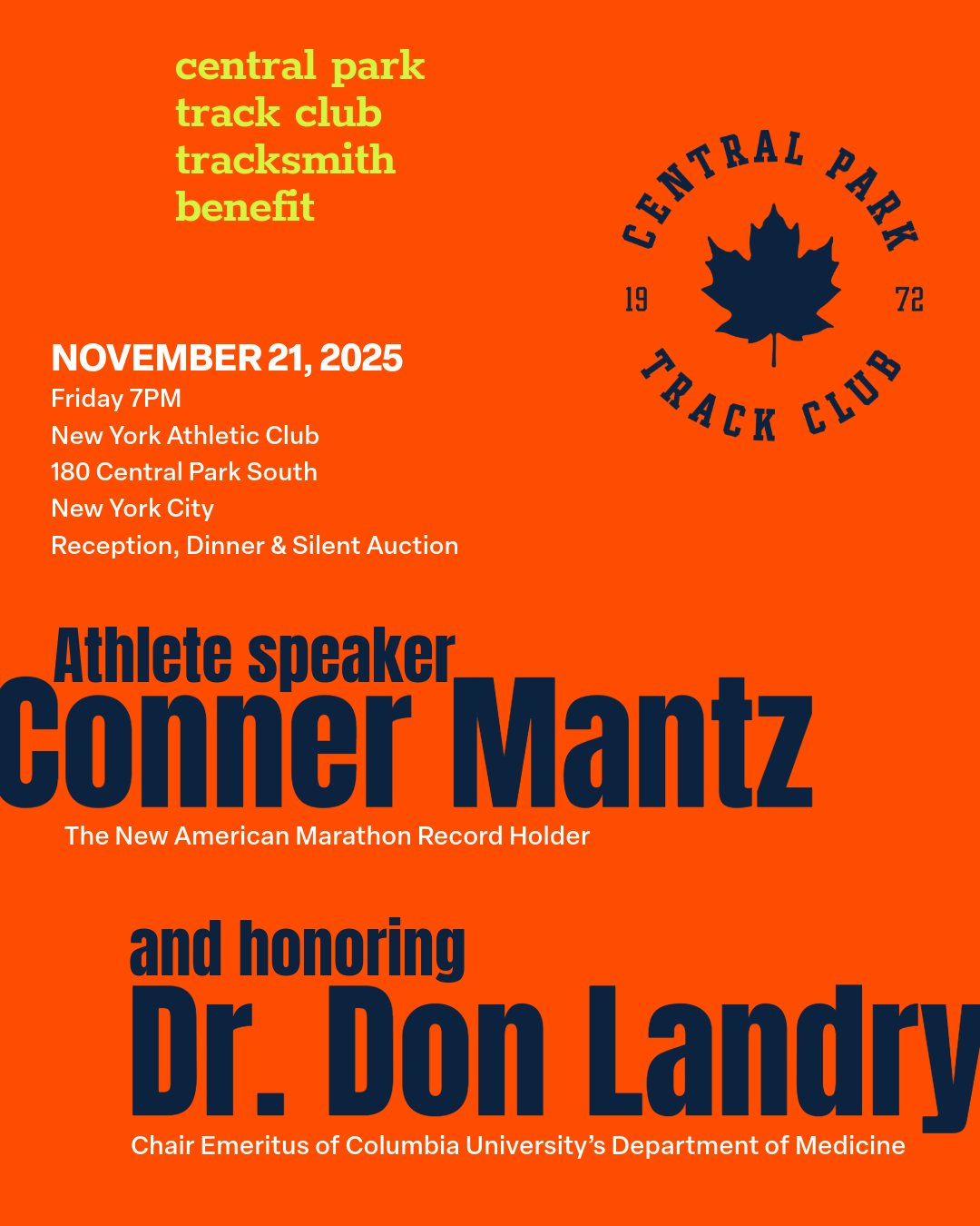 Founded in 1972, the Central Park Track Club is comprised of more than 600 members from Greater New York including 12 Olympians and 19 World Championships qualifiers. CPTC has won the USA Track & Field Club National Championships nine times. The club is a 501(c)(3) non-profit organization. For more information about the club please email cptcbenefit@gmail.com.